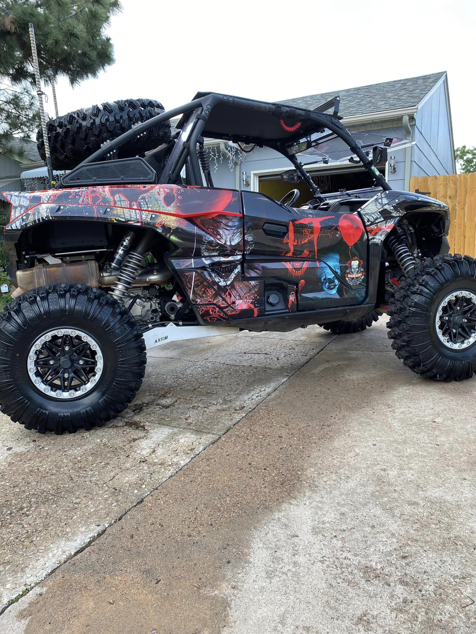 At KrazyGraphics.com we specialize in many types of UTV / SXS Graphics kits / wraps. These krx1000 custom graphics are made specifically for your machine and require no trimming or modifications. Since these are made your machine the fitment is very accurate and very easy to install! Therefore you have no need to hire a ( wrap guy ) to do your installs. The material is very high quality 21 mil material. Since this material is made for UTV's don't be afraid to run it in the woods or in the dunes. Your krx 1000 custom graphics will hold up just fine. We have been making these graphics for over 10 years so if you want something custom just let us know! With a simple deposit we can make anything you want.